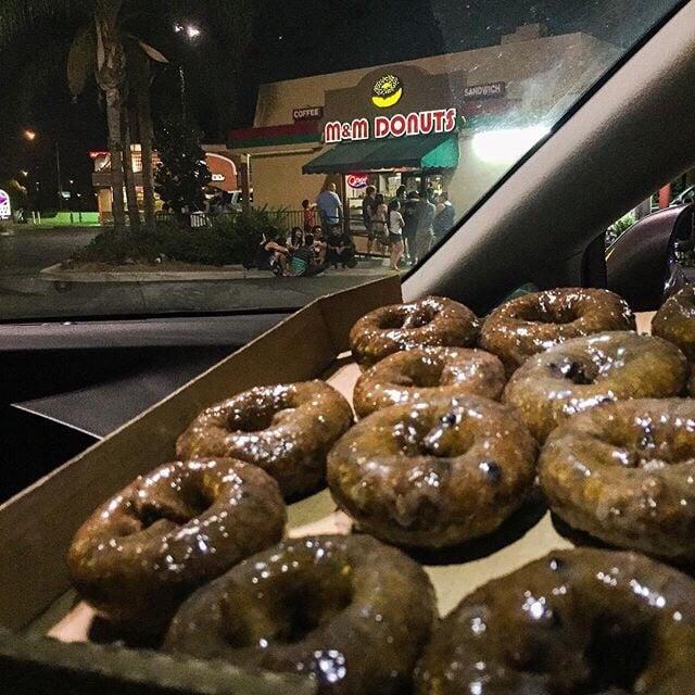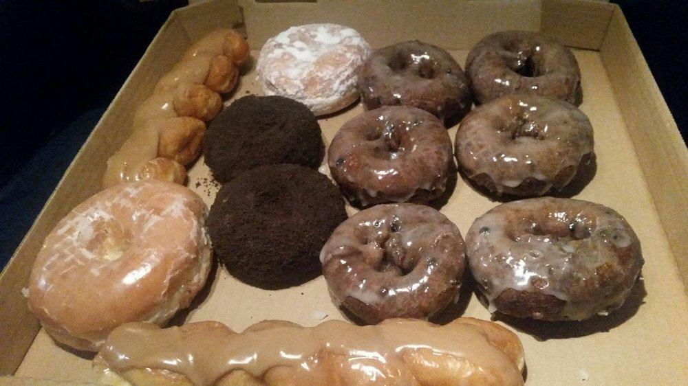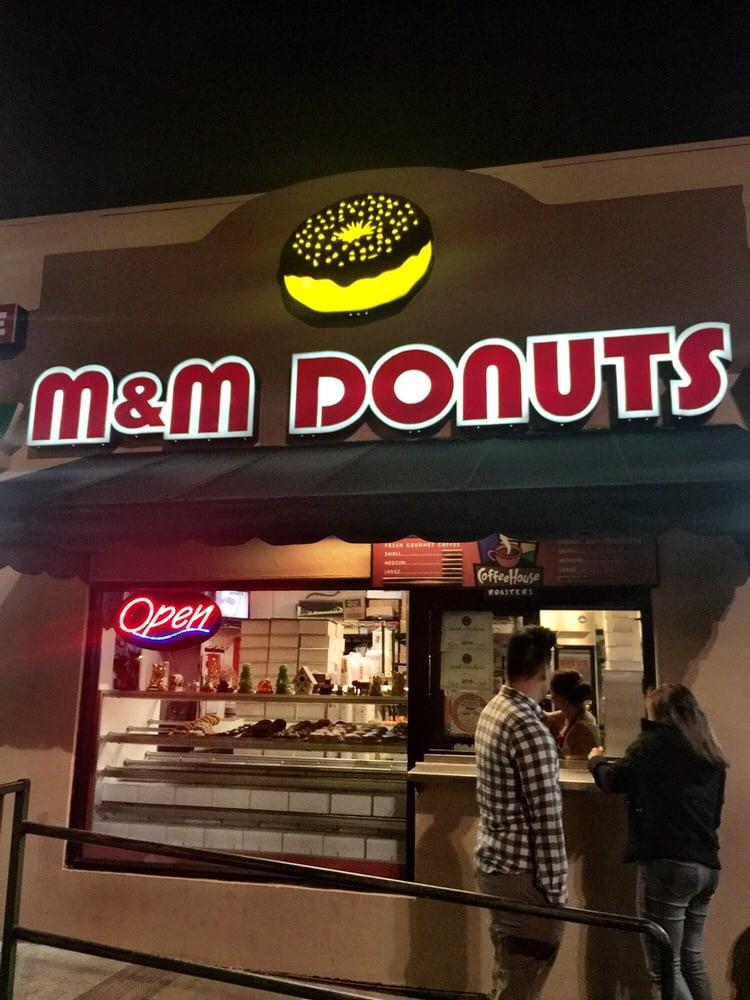 We are known for our famous Blueberry Donuts. They are hot and fresh starting at 9:00pm! We also serve other donuts and delicious breakfast croissant sandwiches. One croissant sandwich to try that's not on the menu is the Works( sausage, ham, egg, bacon, and cheese with choice of jalapenos). All of our ingredients are fresh and these sandwiches are made to order. Get here early to avoid any long lines, especially in the late night hours.