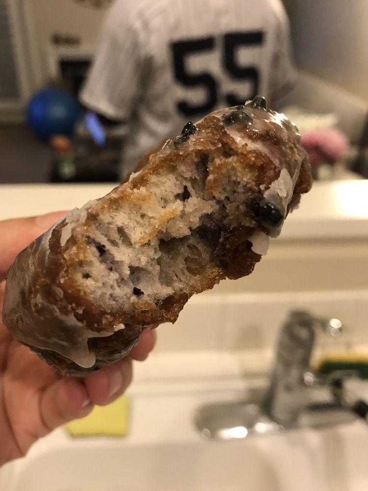 The satisfaction of hot blueberry donuts with fresh fried crispy edges and a glaze that still hasn't fully cooled down sticking to your finger tips is why I love these donuts.